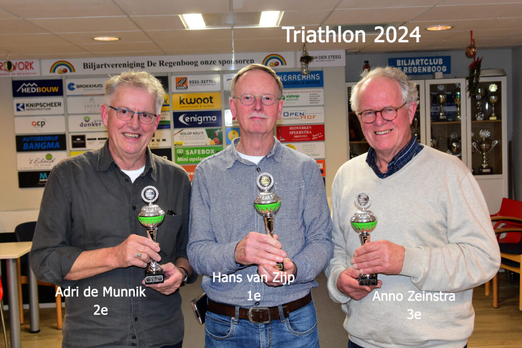 Op donderdag 19 december hebben we onze jaarlijkse triathlon gespeeld. Er hadden zich uiteindelijk 32 deelnemers aangemeld, die door een loting waren ingedeeld in de spelsoorten driebanden, bandstoten en libre, er werden totaal 3 x 16 partijen gespeeld. lees meer >>>>>>>>