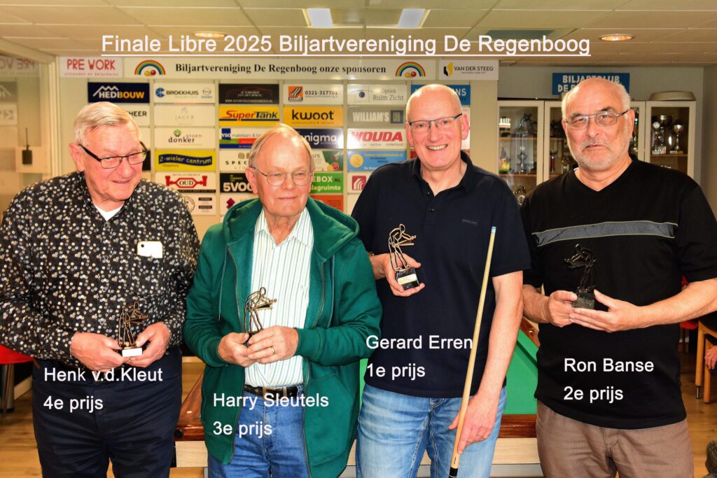 Bandstoten: 1 Roy Korthout, 2 Jan de Jong, 3 Gerrit Bleeker en 4 Gerard Boons Driebanden: 1 Lex van Seventer, 2 Cees Brands, 3 Henk van de Kleut en 4 Cor Fels